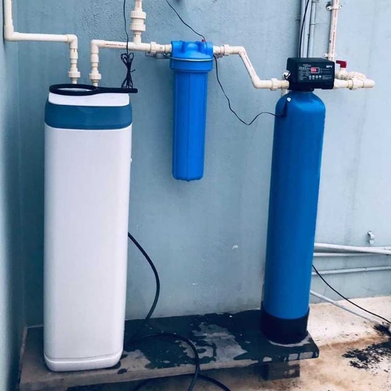 Installation of water softeners to reduce hardness, improving water quality for daily use.